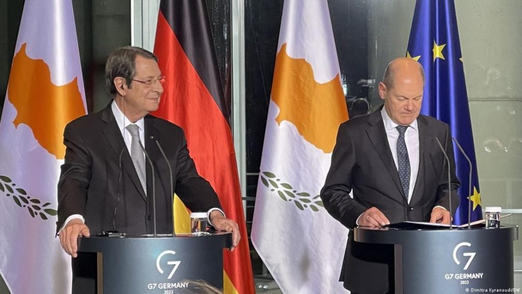 Όπως υπενθυμίζει η DW τον περασμένο Νοέμβριο ο καγκελάριος Όλαφ Σολτς σε κοινή συνέντευξη Τύπου που είχε παραχωρήσει με τον πρώην πρόεδρο Νίκο Αναστασιάδη είχε πει εμφατικά ότι «η Γερμανία υποστηρίζει ρητά μια διζωνική, δικοινοτική λύση στη βάση των ψηφισμάτων των Ηνωμένων Εθνών». Μάλιστα είχε δηλώσει τότε ότι θα ευχόταν «η αδιέξοδη διαπραγματευτική διαδικασία για το Κυπριακό να αποκτήσει νέα δυναμική».