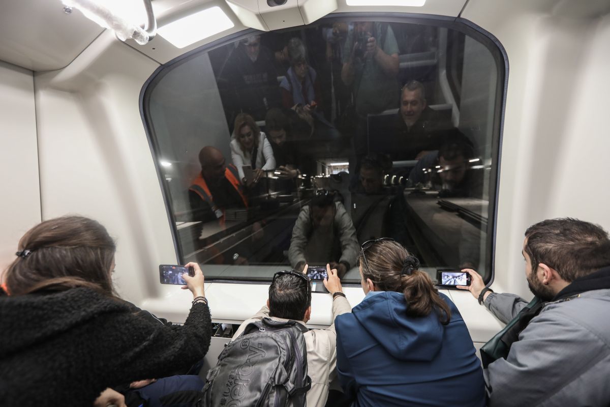 Το πρώτο του δοκιμαστικό δρομολόγιο με επιβάτες έκανε το μετρό Θεσσαλονίκης, από το νέο Σιδηροδρομικό Σταθμό Θεσσαλονίκης μέχρι και το αμαξοστάσιο της Πυλαίας.