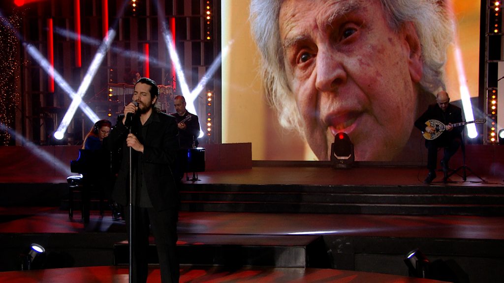 Special guest, σε μία από τις πιο ιδιαίτερες και συναισθηματικά φορτισμένες στιγμές της βραδιάς, η ηθοποιός Μαίρη Χρονοπούλου, η οποία τραγουδά Μίκη Θεοδωράκη, συγκινείται και συγκινεί.
