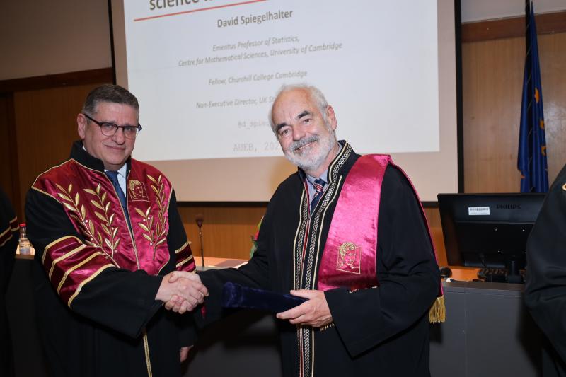 Το Οικονομικό Πανεπιστήμιο Αθηνών διοργάνωσε την Τετάρτη 17 Μαΐου 2023 και ώρα 19:00 στo Αμφιθέατρο «Λεωνίδας Ζέρβας» του Εθνικού Ιδρύματος Ερευνών, την Τελετή Αναγόρευσης σε Επίτιμο Διδάκτορα του Τμήματος Στατιστικής, της Σχολής Επιστημών και Τεχνολογίας της Πληροφορίας, του Καθηγητή του Πανεπιστημίου του Κέιμπριτζ, Sir David John Spiegelhalter.