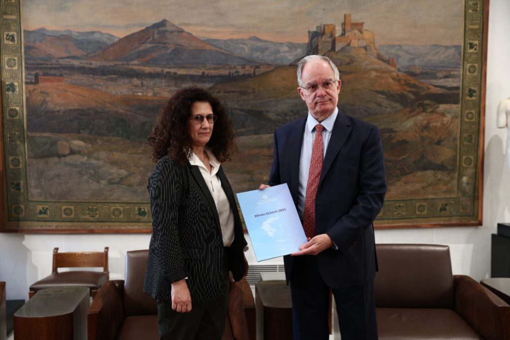 Στο Προεδρικό Μέγαρο μετέβη ο Κώστας Τασούλας και παρέδωσε στην Πρόεδρο της Δημοκρατίας Κατερίνα Σακελλαροπούλου τα τελικά αποτελέσματα των εκλογών της 21ης Μαΐου.