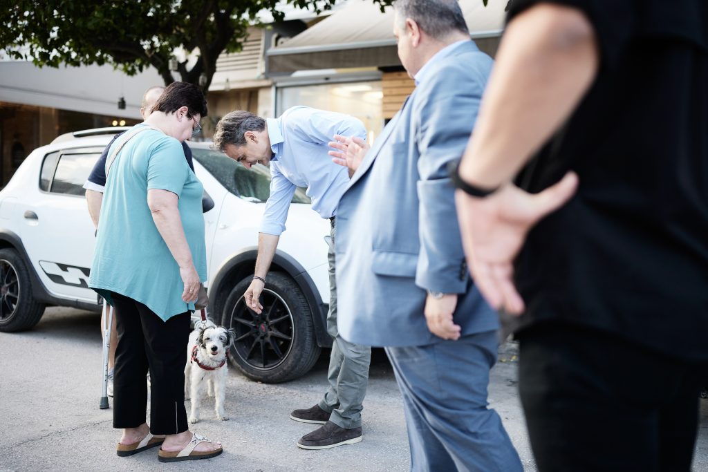 Το Μοσχάτο επισκέφθηκε το απόγευμα ο Πρόεδρος της Νέας Δημοκρατίας, Κυριάκος Μητσοτάκης και συνομίλησε με πολίτες και καταστηματάρχες. Παρασκευή 26 Μαΐου 2023.