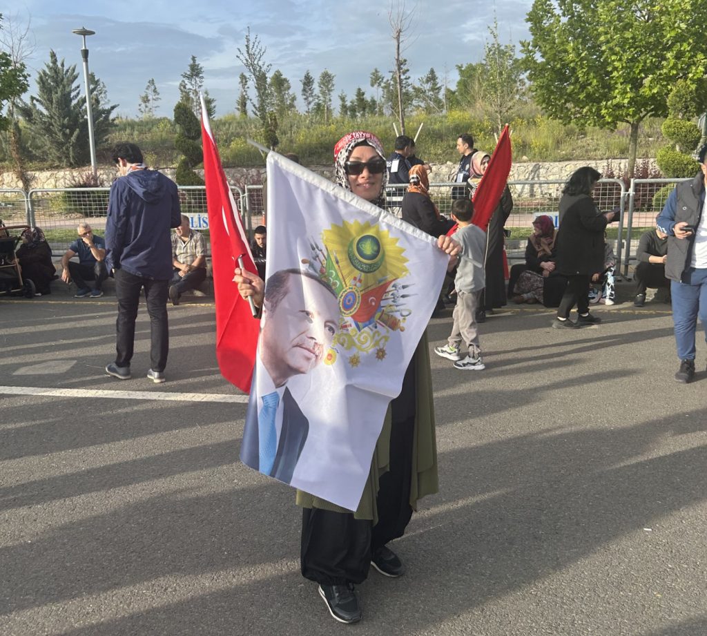 Ο κύριος, που καταφθάνει με τις δυο κόρες και τη σύζυγό του, θέλει να δηλώσει σε ξένο, και δη ελληνικό μέσο, ότι ψηφίζει τον Ερντογάν και θα τον ξαναφηφίσει, γιατί είναι «εθνικός ηγέτης», που «διέσωσε τις τουρκικές αξίες, ενώ η Ευρώπη επεδίωξε να τις διαταράξει». «Δεν νικήσατε εσείς. Νικήσαμε εμείς», φώναξε ξαφνικά μια γυναίκα, κυματίζοντας τη σημαία του ΑΚΡ, σε δημοσιογράφο αγγλόφωνου μέσου, δίνοντας ατύπως το παράγγελμα να ξεκινήσουν ομάδες νεοαφιχθέντων νεαρών να τραγουδούν το όνομα του Ρετζέπ Ταγίπ Ερντογάν.