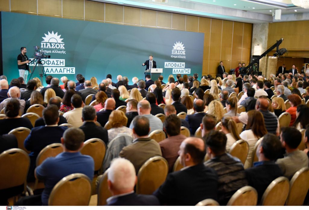 Η αίθουσα ήταν ασφυκτικά γεμάτη, ενώ συνθήματα όπως το «ΠΑΣΟΚ είναι εδώ ενωμένο δυνατό» δονούσαν την ατμόσφαιρα, την ίδια ώρα που δεν έλειπαν και κάποιες σημαίες στις πρώτες σειρές. Γύρω στις 14.00 ωστόσο κάποιοι από τους παρευρισκόμενους άρχισαν να αποχωρούν. Η ομιλία ολοκληρώθηκε στις 14.20.