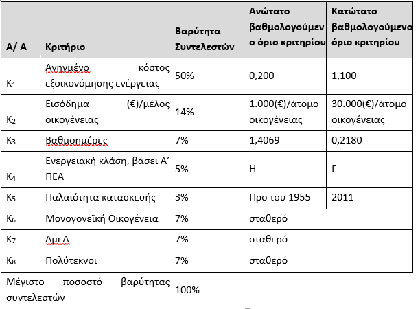 Κριτήρια για τη βαθμολόγηση των αιτήσεων: