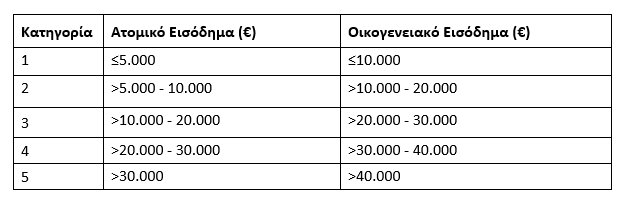 Δυνητικοί ωφελούμενοι του προγράμματος μπορεί να είναι οι αιτούντες που εντάσσονται στις παρακάτω εισοδηματικές κατηγορίες: