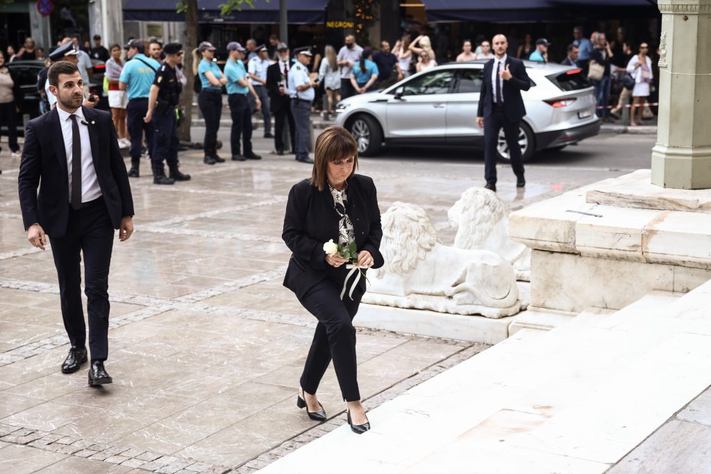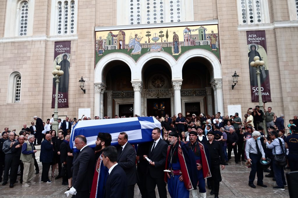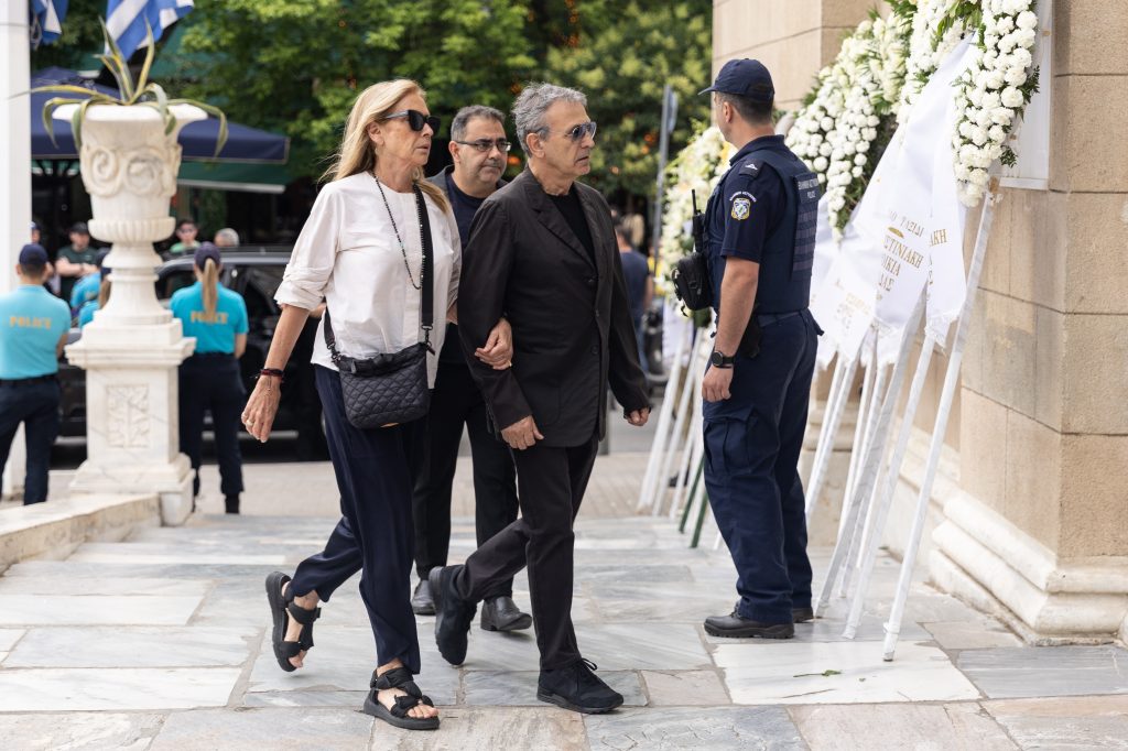 Πλήθος κόσμου από τον χώρο της πολιτικής και του πολιτισμού βρέθηκε στην Μητρόπολη Αθηνών για να πει το τελευταίο αντίο στον σπουδαίο καλλιτέχνη. Ειδικότερα, στο ναό βρέθηκαν η Πρόεδρος της Δημοκρατίας Κατερίνα Σακελλαροπούλου, ο Πρόεδρος της ΝΔ Κυριάκος Μητσοτάκης, ο γ.γ. του ΚΚΕ Δημήτρης Κουτσούμπας και ο Πρόεδρος του ΠΑΣΟΚ, Νίκος Ανδρουλάκη, ο οποίος εκφώνησε και επικήδειο.