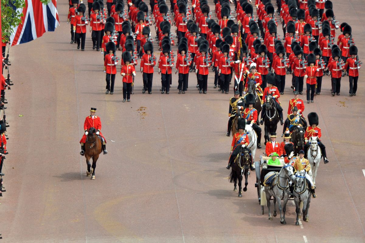 Στην παρέλαση θα συμμετάσχουν περίπου 1.400 στρατιώτες, 400 μουσικοί και 200 άλογα, με επικεφαλής τη φοράδα Γιούνο (σ.σ. η βασίλισσα Καμίλα της έδωσε το όνομα της ρωμαϊκής θεότητας, αντίστοιχης με την θεά Ήρα της ελληνικής μυθολογίας). Την Γιούνο θα ακολουθούν τρία άλογα με τύμπανα: ο Περσέας, ο Άτλας και ο Απόλλων. Τα συγκεκριμένα άλογα φέρουν βαθμό ταγματάρχη στις βρετανικές ένοπλες δυνάμεις.