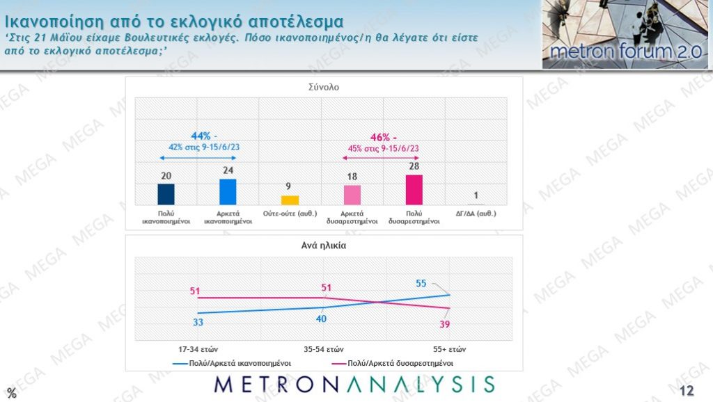 Σε ποσοστό 87% οι ψηφοφόροι σκέφτονται να πάνε να ψηφίσουν αντί 11% που σκέφτονται να μην πάνε. Παράλληλα, 44% δηλώνουν πολύ ή αρκετά ικανοποιημένοι από το αποτέλεσμα των εκλογών ενώ 46% πολύ ή αρκετά δυσαρεστημένοι.