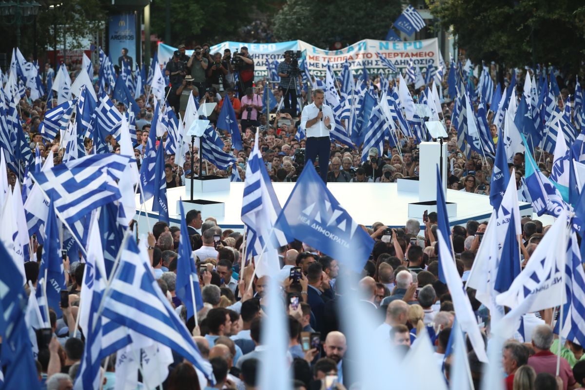 Στην Πλατεία Συντάγματος δίνει αυτή την ώρα την τελευταία του ομιλία στην κεντρική προεκλογική συγκέντρωση της ΝΔ ο πρόεδρος του κόμματος Κυριάκος Μητσοτάκης.