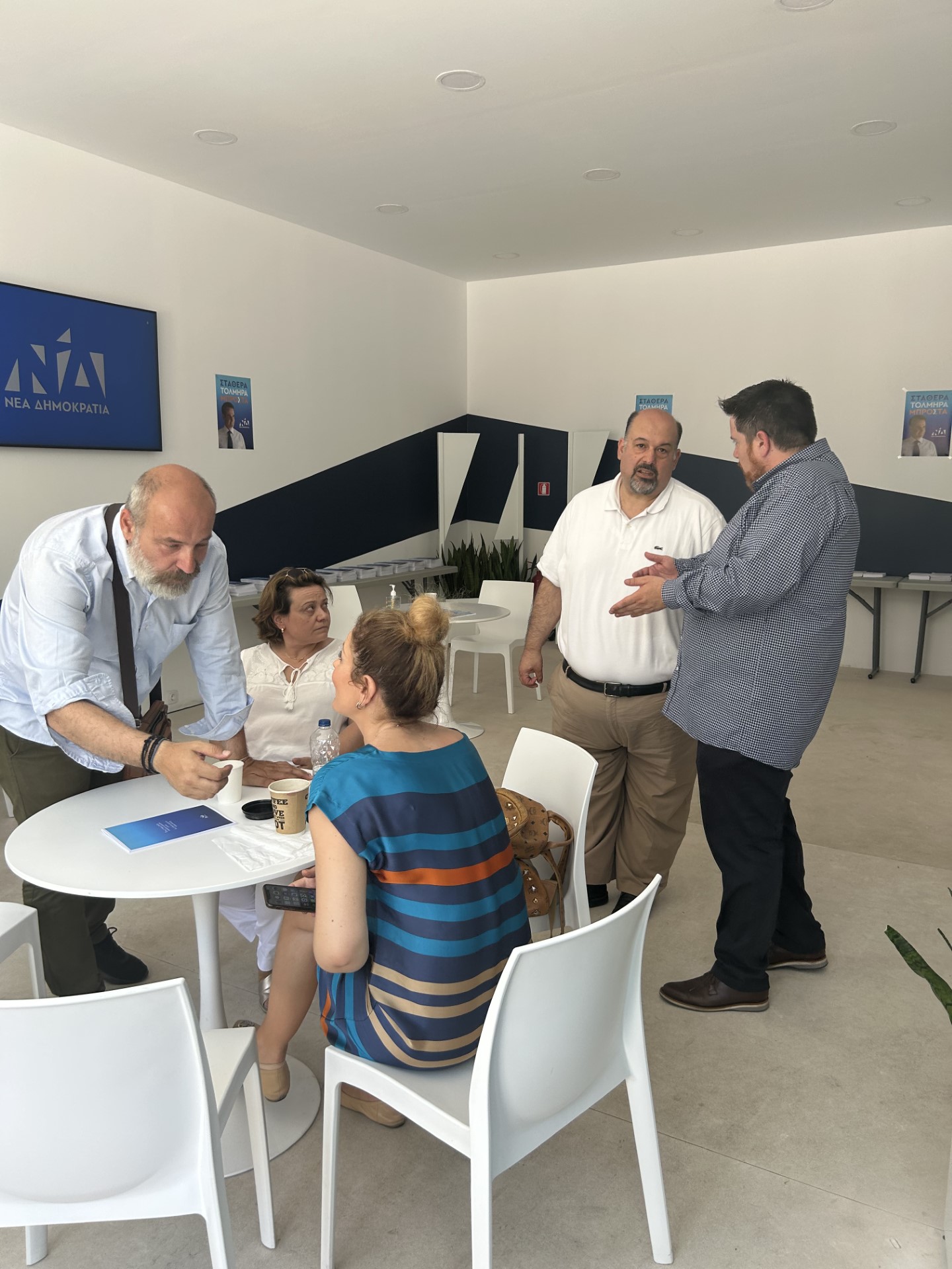 «Έχουν έρθει άνθρωποι από την Αμερική για να ψηφίσουν. Χτες, ένα ζευγάρι 55ρηδων ήρθε και μας ζήτησε ψηφοδέλτιο. Είναι η πρώτη φορά που θα ψηφίσουν στη χώρα. Θέλουν η γενέτειρά τους να έχει σταθερότητα κι ασφάλεια, είπαν», εξηγεί ο νεαρός με το αυτοκόλλητο της ΝΔ στο πουκάμισο, που παρατηρεί καθημερινά μεγάλης ηλικίας γυναίκες να περνάνε και να χαιρετάνε, φωνάζοντας προς το μέρος τους «με τη νίκη».