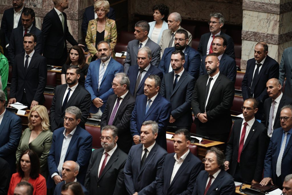 Την πρώτη τους εμφάνιση στην αίθουσα της Ολομέλειας είχαν σήμερα κατά την ορκωμοσία της νέας Βουλής οι 12 βουλευτές του κόμματός Σπαρτιάτες, που εκλέχτηκαν μετά την ανοιχτή στήριξη του Ηλία Κασιδιάρη. Οι 12 βουλευτές κάθισαν πίσω από τα έδρανα του ΣΥΡΙΖΑ ενώ δίπλα τους θα κάθονται οι βουλευτές της Νίκης.