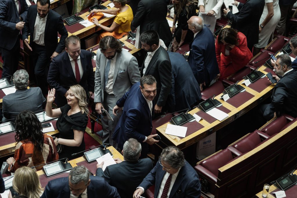 Κατευθύνθηκε στο ίδιο έδρανο που χρησιμοποιούσε ως Πρόεδρος του ΣΥΡΙΖΑ, δίπλα στην Όλγα Γεροβασίλη, και τον Σωκράτη Φάμελλο. Ειδικά για την Όλγα ο ΣΥΡΙΖΑ την προορίζει (προσωρινά) για Α΄Αντιπρόεδρο της Βουλής. Λέω προσωρινά γιατί όταν έρθει η ώρα εκλογής νέου Προέδρου του ΣΥΡΙΖΑ ουδείς γνωρίζει τι θα πράξει η Όλγα η οποία δεν θέλησε να γίνει Πρόεδρος της Κοινοβουλευτικής Ομάδας και να μην υποστεί την φθορά των δημοτικών εκλογών.