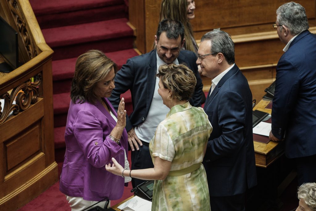 Ο πρωθυπουργός Κυριάκος Μητσοτάκης κατέβηκε κάποια στιγμή στα βουλευτικά έδρανα και συνομίλησε με όλους σχεδόν τους βουλευτές της ΝΔ. Συναντήθηκε, μάλιστα, στον διάδρομο της ολομέλειας και με τον Νίκο Ανδρουλάκη την ώρα που ο πρόεδρος του ΠΑΣΟΚ έμπαινε στην αίθουσα με τους δύο πολιτικούς αρχηγούς να έχουν τυπική χειραψία. Στη χαλαρή συζήτηση που είχε με τους βουλευτές αποκάλυψε πως ήθελε τον υφυπουργό Εργασίας Βασίλη Σπανάκη πιο αδύνατο («έχεις ξεχειλίσει»- του είπε συγκεκριμένα) με την Ντόρα όμως να μη συμφωνεί λέγοντάς του πως «και έτσι κούκλος είναι».