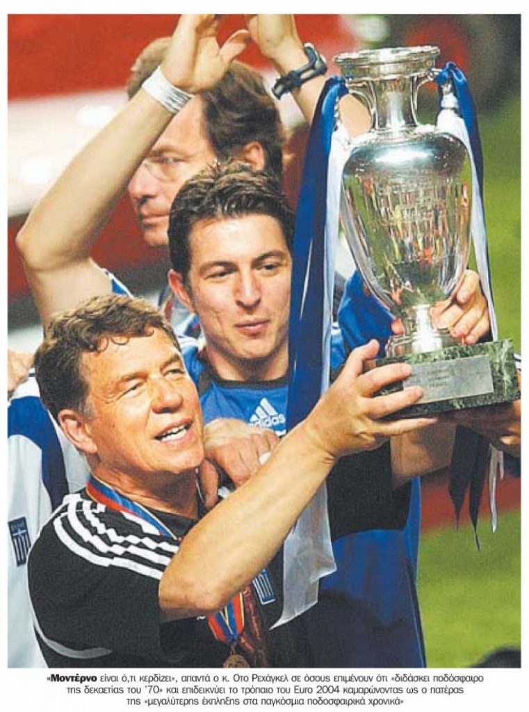 Mετά την ολοκλήρωση του νικητήριου για την Ελλάδα τελικού, όπως μετέφεραν «TΑ ΝΕA» της 5ης Ιουλίου 2004, ο Ότο Ρεχάγκελ δήλωσε: «Αυτό το 1-0 αξίζει περισσότερο από κάθε λέξη στον αθλητισμό. Είναι φανταστικό αυτό που μπορεί να καταφέρει το ποδόσφαιρο. Σε μία ημέρα κατάφερε να ενώσει όλους τους Έλληνες σε όλο τον κόσμο, πράγμα που δεν μπορεί να το καταφέρει ούτε η πολιτική.