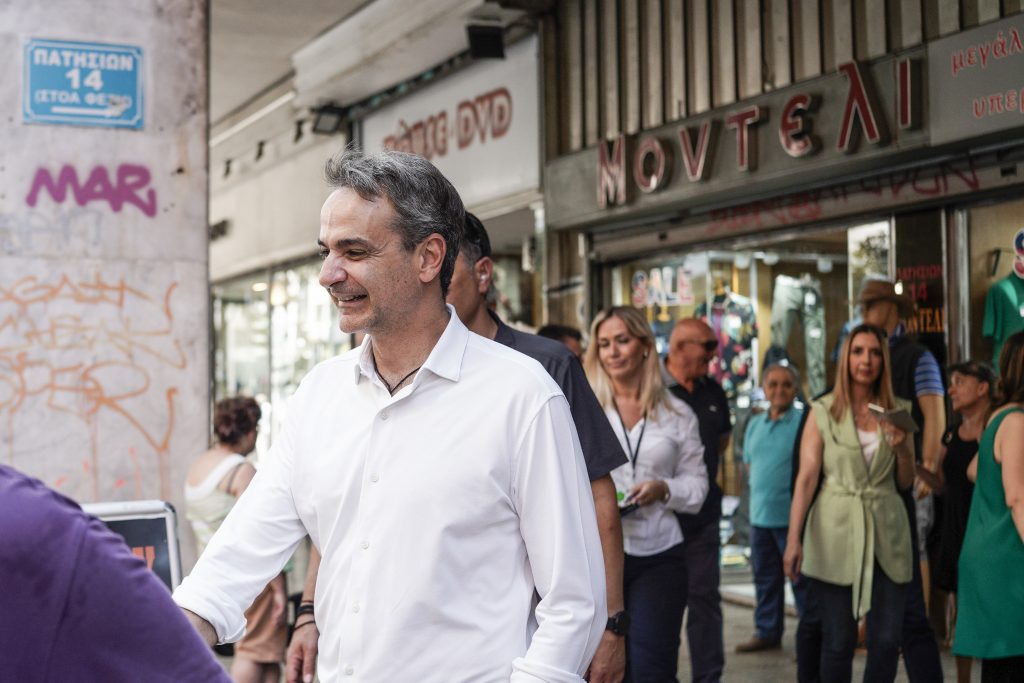 Εν συνέχεια ο Κυριάκος Μητσοτάκης περπάτησε στην περιοχή της Ομόνοιας, όπου συνομίλησε με καταστηματάρχες.