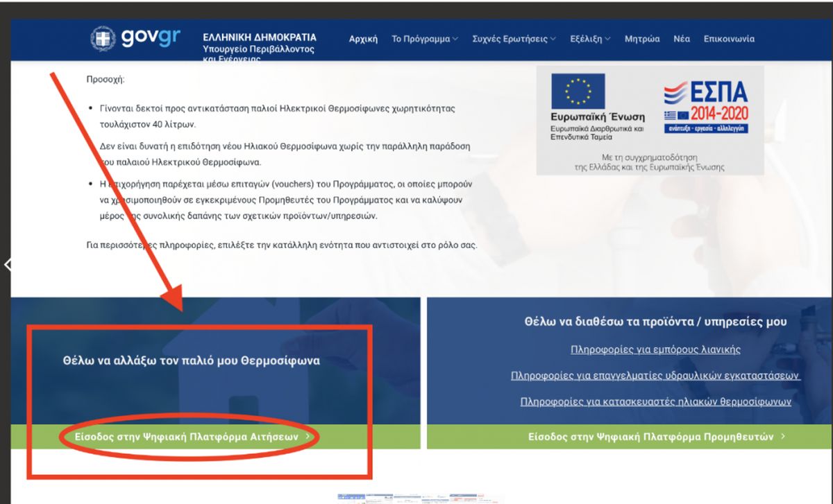 Έχοντας εισέλθει ο ενδιαφερόμενος στην πλατφόρμα allazothermosifona.gov.gr θα πρέπει να κατέβει χαμηλά στη σελίδα και να κάνει κλικ εκεί που λέει «Είσοδος στην ψηφιακή πλατφόρμα αιτήσεων» κάτω από τον διακριτικό τίτλο: «Θέλω να αλλάξω τον παλιό μου θερμοσίφωνα». Αμέσως μετά θα του ζητηθεί να εισάγει τους κωδικούς Taxisnet και να πατήσει σύνδεση. Με την ορθή εισαγωγή των εν λόγω κωδικών του ζητείται επιπλέον να πατήσει «συνέχεια» στη διαδικασία αυθεντικοποίησης του χρήστη και μετά να κάνει κλικ στο κουμπί «Αποστολή».