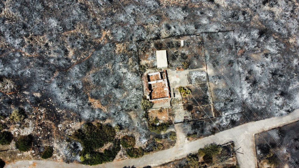 Οι εστίες καίνε θαμνώδεις εκτάσεις και πουρνάρια, ενώ νωρίτερα στην περιοχή εκδηλώθηκαν ακραία καιρικά φαινόμενα με έντονες βροχοπτώσεις και κεραυνούς.
