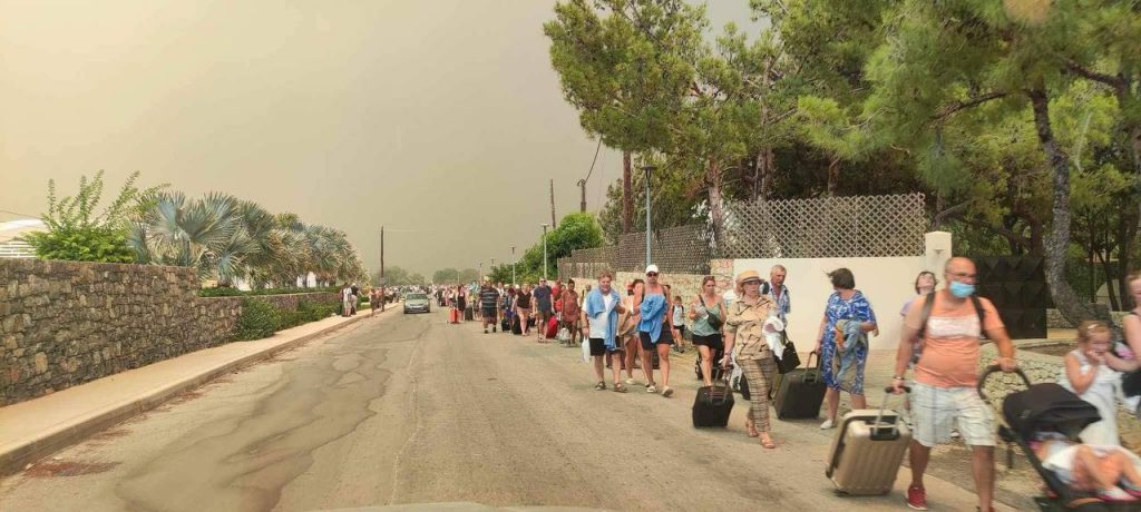 Συγκεκριμένα, από το Κεντρικό Λιμεναρχείο Ρόδου έχουν επιταχθεί όλα τα τουριστικά σκάφη που ελλιμενίζονται στο Μανδράκι και με αυτά μεταφέρονται οι τουρίστες από τα ξενοδοχεία που εκκενώνονται, από το Κιοτάρι σε ασφαλές σημείο στην παραλία Καλάθου.