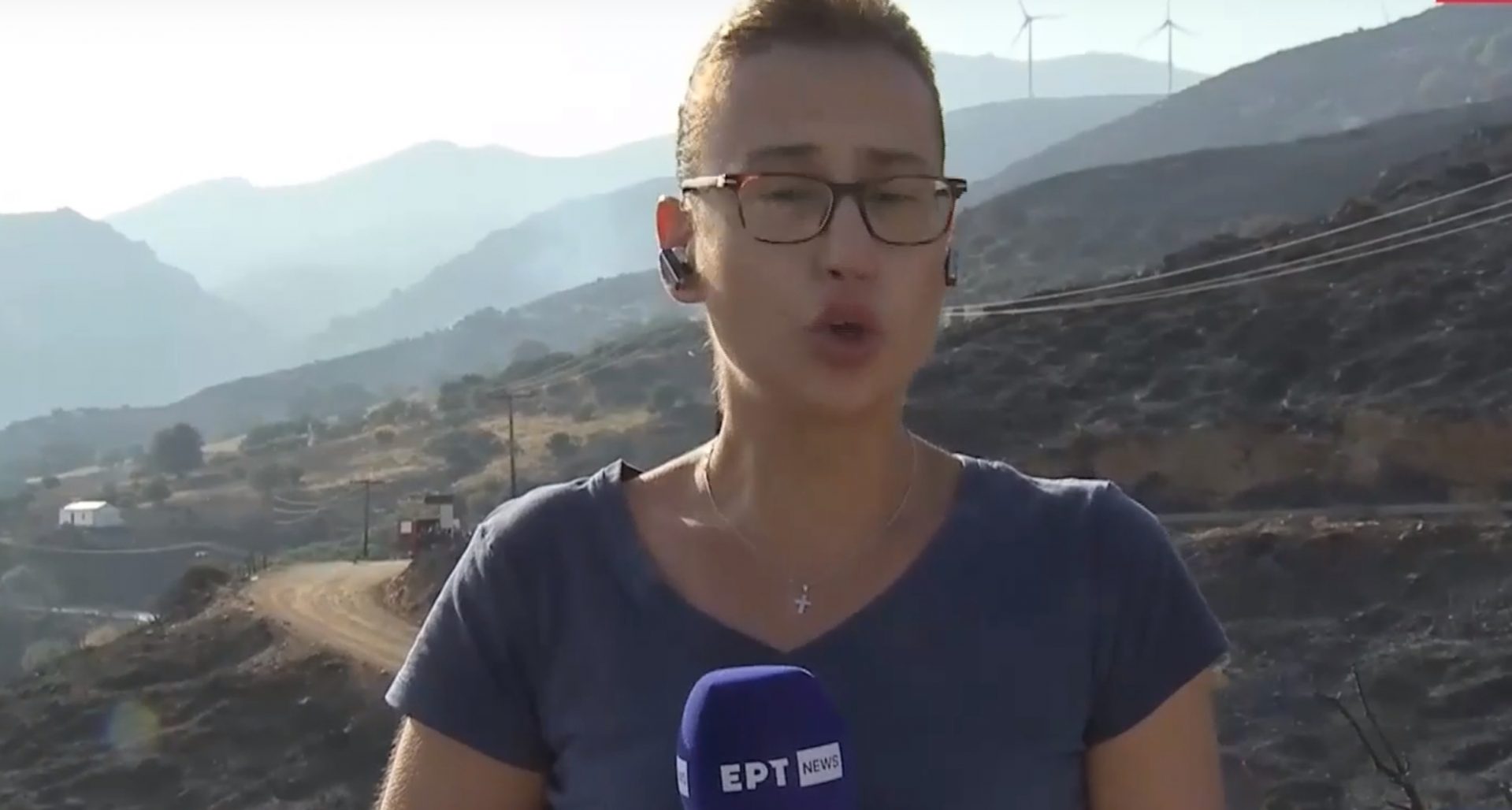 Η δημοσιογράφος Ελένη Μπουγά, που καλύπτει για την ΕΡΤ το μέτωπο της μεγάλης φωτιάς της Καρύστου, λύγισε περιγράφοντας το είχε μόλις συμβεί μπροστά στα μάτια της.