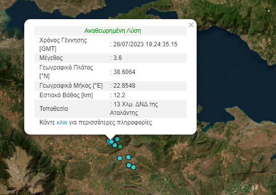 Σύμφωνα με την ανάλυση του Γεωδυναμικού Ινστιτούτου, ο σεισμός σημειώθηκε 13 χιλιόμετρα νοτιοδυτικά της Αταλάντης και το εστιακό βάθος εντοπίζεται στα 12,2 χιλιόμετρα.