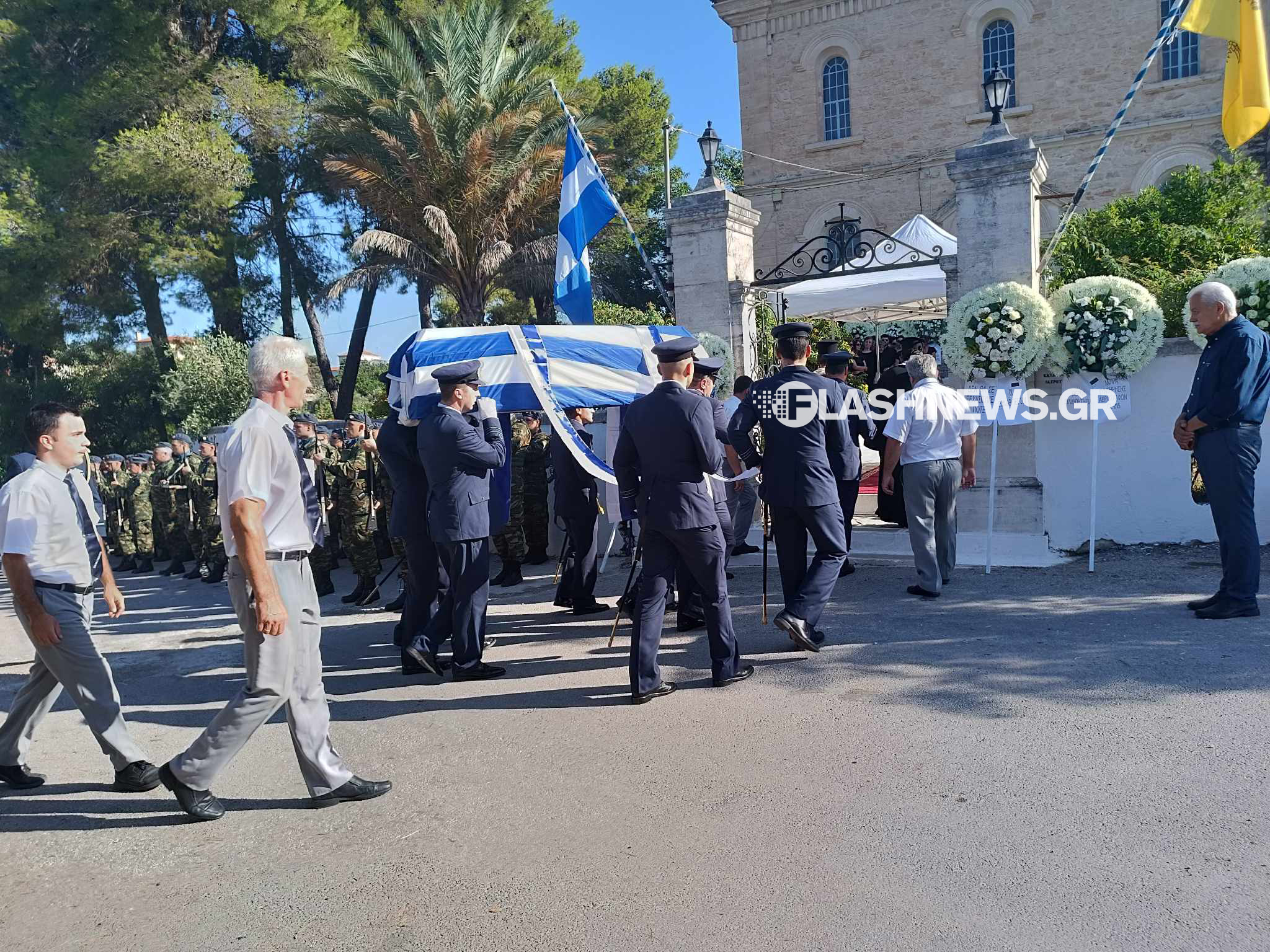Η εξόδιος ακολουθία χοροστατούντων των Μητροπολιτών Κυδωνίας και Αποκορώνου Δαμασκηνού και Κισάμου και Σελίνου Αμφιλόχιου, πραγματοποιείται στον τόπο που μεγάλωσε ο πιλότος ήρωας της Πολεμικής Αεροπορίας.