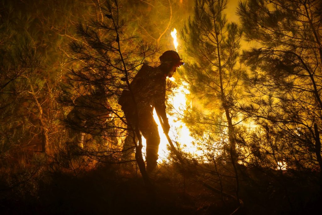 Τα πεζοπόρα τμήματα εισχώρησαν από το πρωί μέσω των αντιπυρικών ζωνών στο δάσος για να ανακόψουν την καταστοφική πορεία της φωτιάς που κινήθηκε νότια και ανατολικά από το σημείο που ξέσπασε, ενώ πεζοπόρα τμήματα αναπτύχθηκαν και στην περιοχή πάνω από το χωριό Διευχά.