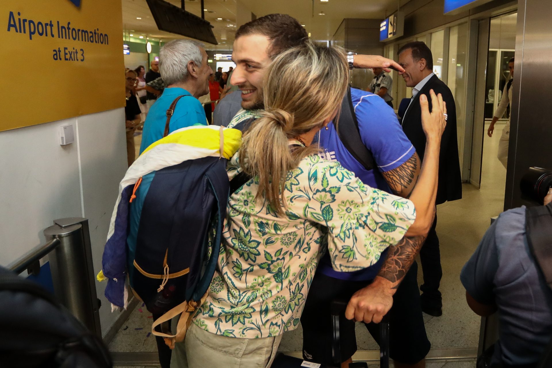 Παρών στο αεροδρόμιο ήταν ο νέος αναπληρωτής υπουργός Αθλητισμού, Γιάννης Βρούτσης. «Είμαι πολύ χαρούμενος γιατί στις πρώτες μέρες μου στο υπουργείο είχα την χαρά και την τιμή να υποδεχθώ τους πρωταθλητές του κόσμου, γιατί στις καρδιές μας είναι πρωταθλητές κόσμου», σημείωσε χαρακτηριστική.