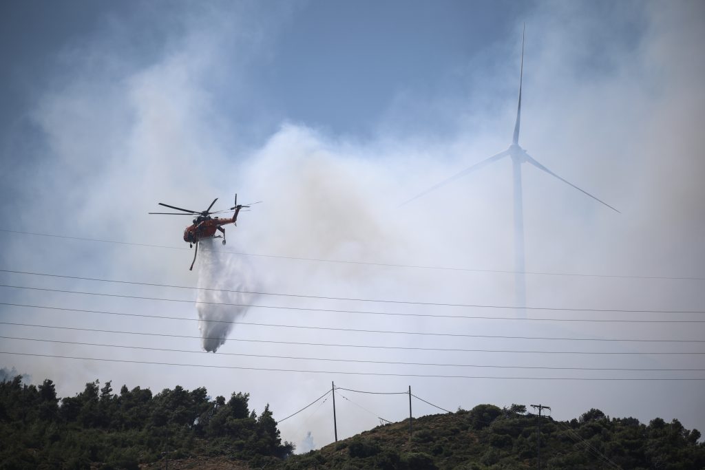 Σύμφωνα με την ενημέρωση της Πυροσβεστικής στη φωτιά επιχειρούν και εναέρια μέσα.