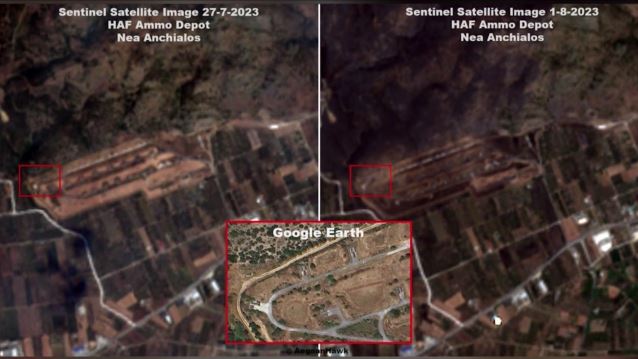 Σύμφωνα με φωτογραφίες του δορυφόρου Sentinel πριν και μετά τις εκρήξεις, δείχνουν πως οι εκρήξεις που συγκλόνισαν την περιοχή και τους κατοίκους κατέστρεψαν τον υπέργειο χώρο αποθήκευσης πυρομαχικών, αλλά οι αποθήκες τύπου ΝΑΤΟ δεν επηρεάστηκαν.