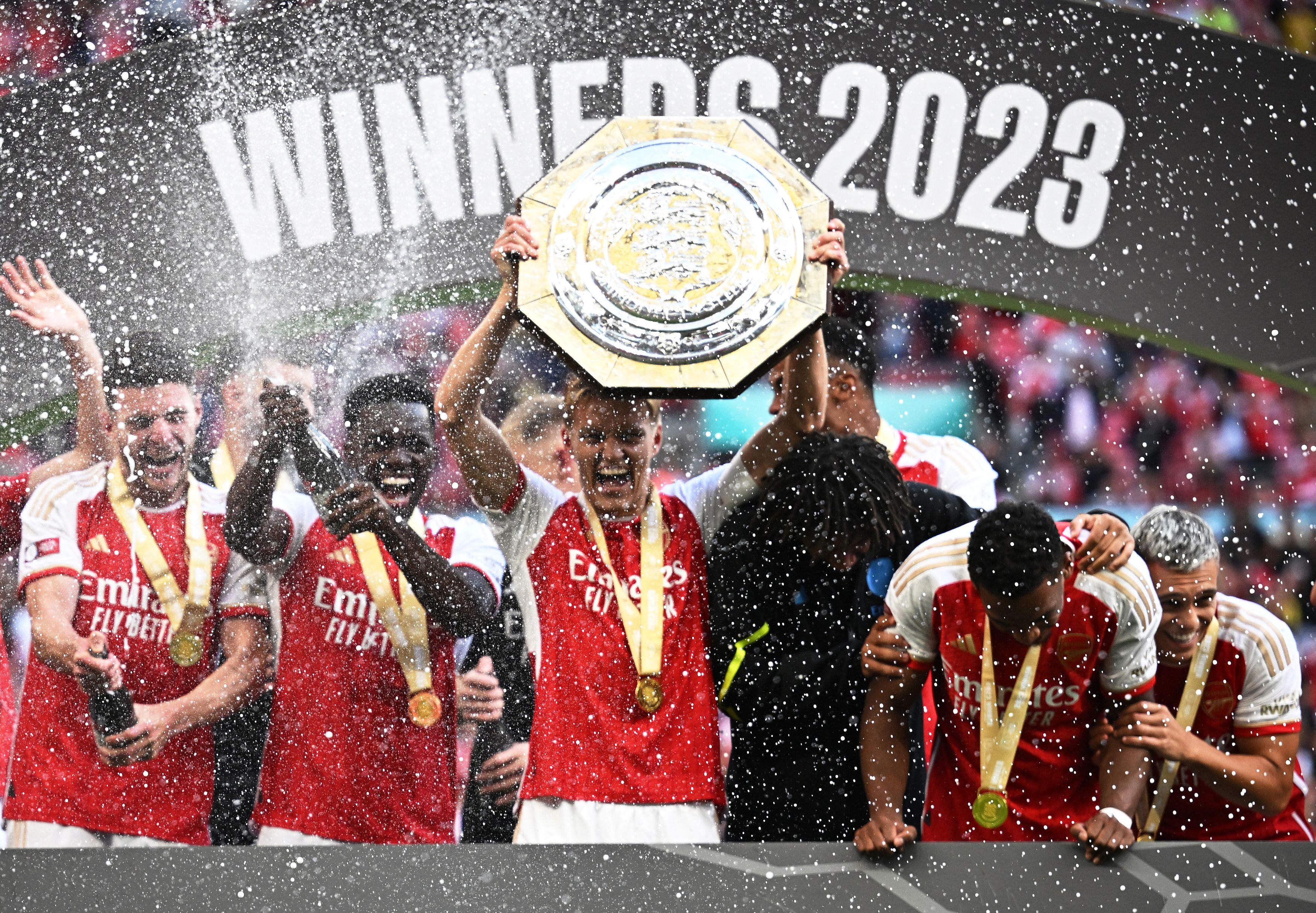 Η εφετινή σεζόν στην Αγγλία ξεκίνησε με συγκλονιστικό τρόπο, καθώς η Άρσεναλ επικράτησε της Μάντσεστερ Σίτι με 4-1 στα πέναλτι (1-1 κανονική διάρκεια) στον 101ο τελικό του Community Shield που διεξήχθη στο Wembley και κατέκτησε το 17ο τρόπαιο της Ιστορίας της στη διοργάνωση, επιτυγχάνοντας ένα πρώτο «πλήγμα» στους περσινούς τρεμπλούχους «πολίτες». Το γκολ του 21χρονου Κόουλ Πάλμερ στο 77’ φάνηκε να γέρνει προσωρινά την πλάστιγγα υπέρ της ομάδας του Πεπ Γκουαρδιόλα, όμως το απίθανο τέρμα του Τροσάρντ (με κόντρα πάνω στον Ακάντζι) στο 90’+11’ έστειλε τις δύο ομάδες στα πέναλτι, όπου «μίλησε» η ψυχραιμία των «κανονιέρηδων», αλλά και η ικανότητα του Ράμσντεϊλ, που χάρισαν το τρόπαιο στην ομάδα του.