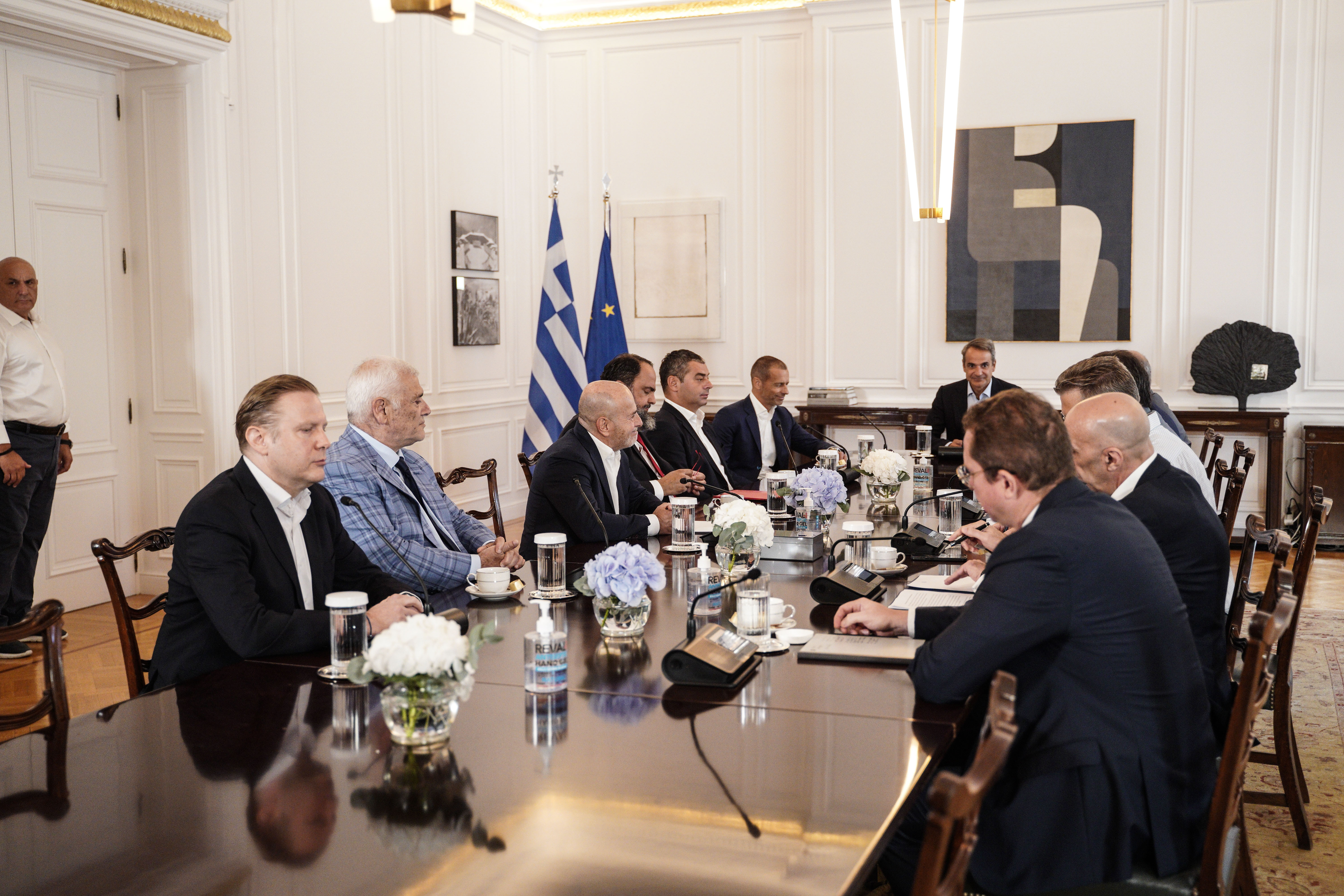 - Οι συναντήσεις Μητσοτάκη: Ευρεία σύσκεψη για την πάταξη της οπαδικής βίας με πρωτοβουλία του πρωθυπουργού πραγματοποιήθηκε χθες το πρωί στο Μέγαρο Μαξίμου. Παρόντες ήταν τόσο ο πρόεδρος της UEFA, Αλεξάντερ Τσέφεριν, τον οποίο προηγουμένως ο Πρωθυπουργός είχε συναντήσει κατ’ ιδίαν στο γραφείο του, όσο και οι τρεις από τους τέσσερις ιδιοκτήτες των ισχυρών ομάδων του ελληνικού ποδοσφαίρου.