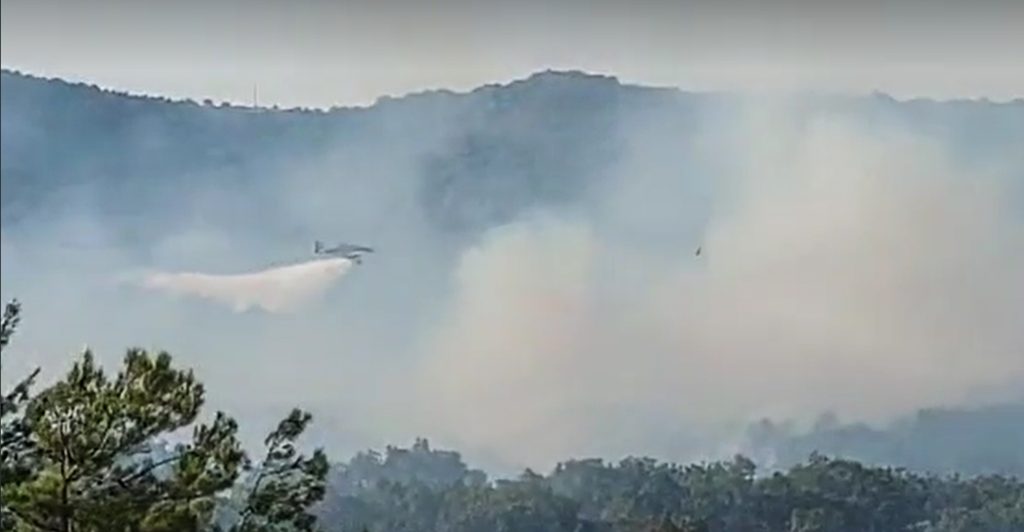 Πυρκαγιά επίσης μαίνεται στην ‘Ανω Δροσίνη Ροδόπης όπου επιχειρουν 15 πυροσβέστες, 6 οχήματα, και 3 αεροσκάφη.