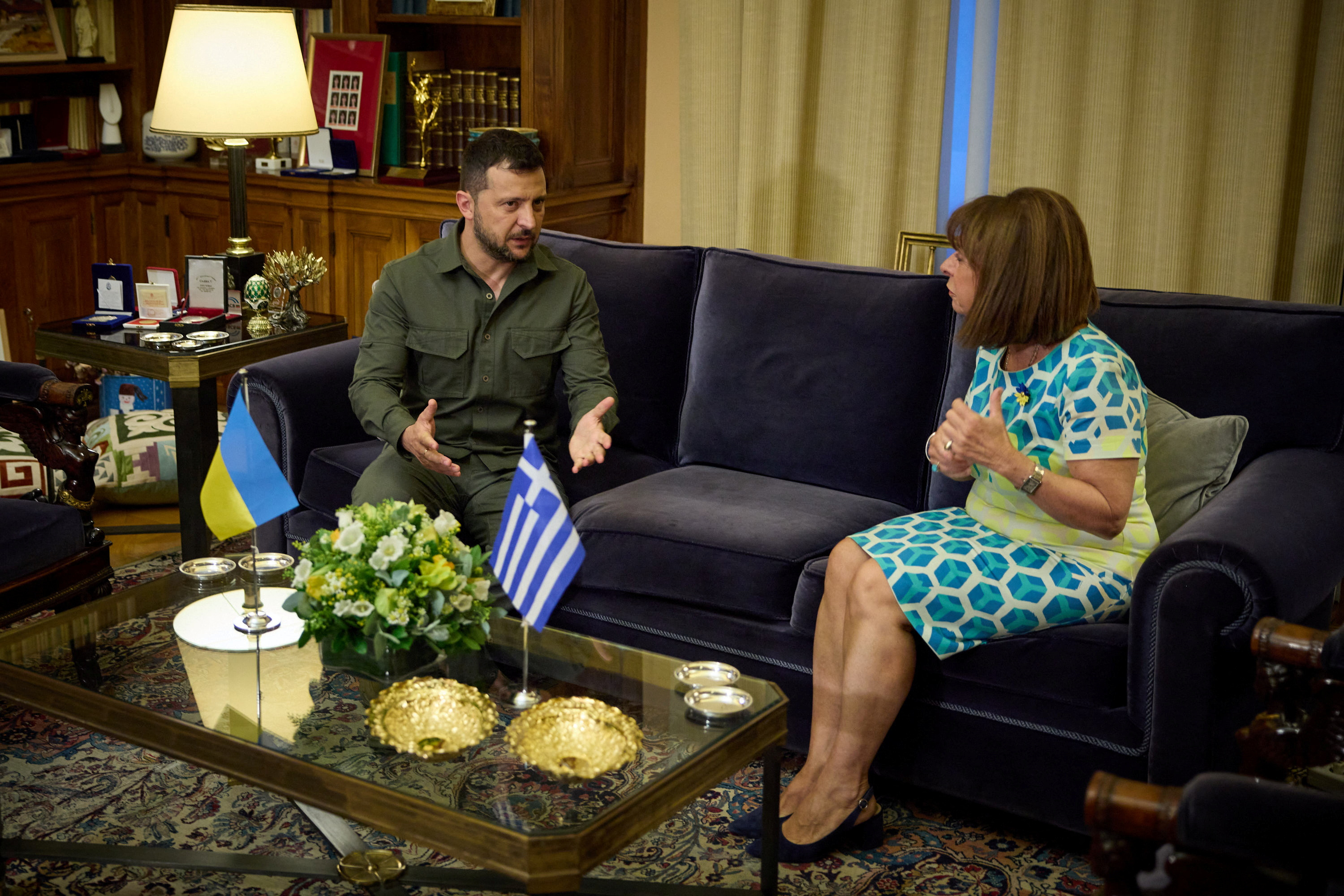 Ήρθε λοιπόν στην χώρα μας ο Πρόεδρος της Ουκρανίας (την είχε επισκεφθεί και προτού γίνει Πρόεδρος της Ουκρανίας) προερχόμενος από την Δανία (όπου πήγε να επιθεωρήσει τα F-16), με την πράσινη στολή εκστρατείας του, όπως τον είχαμε συνηθίσει από την τηλεόραση, με θωρακισμένο αυτοκίνητο, του οποίου οι βαριές πόρτες άνοιγαν με προσοχή χωρίς να αφήνουν ακάλυπτο τον Ζελένσκι και συναντήθηκε με τον Πρωθυπουργό στο Μέγαρο Μαξίμου, αλλά και με την Πρόεδρο της Δημοκρατίας Κατερίνα Σακελλαροπούλου. Η ουκρανική σημαία ανυψώθηκε τιμής ένεκεν στο πρωθυπουργικό γραφείο.