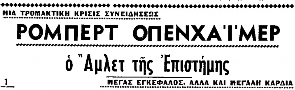 Λίγες εβδομάδες αργότερα, «ΤΑ ΝΕΑ» δημοσιεύουν την επιστολή. Μέσα από τα αποσπάσματα που ακολουθούν, ο Οπενχάιμερ μάς αφηγείται την πολυτάραχη ζωή του και όσα οδήγησαν στη δημιουργία της ατομικής βόμβας.