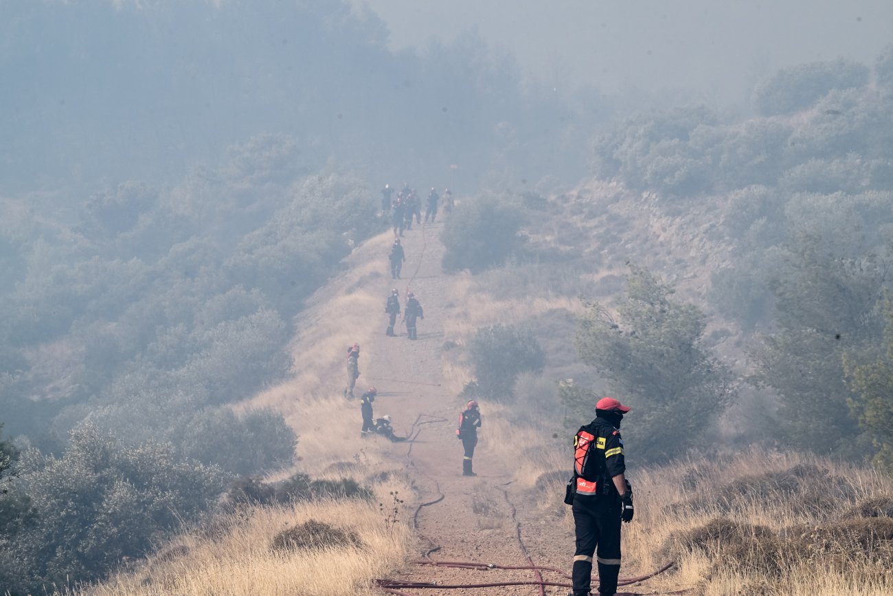 Το πρόβλημα είναι πως, παρόλο που η ένταση των ανέμων έχει μειωθεί συγκριτικά με την Τρίτη ή το πρωί της Τετάρτης, το μικροκλίμα που έχει δημιουργηθεί μέσα στη χαράδρα ευνοεί την εξάπλωση. Πόσο μάλλον σε μια πευκόφυτη περιοχή. Η δυναμική της παραμένει μεγάλη και οι φλόγες «καταπίνουν» κάθε μορφή βλάστησης που συναντούν.