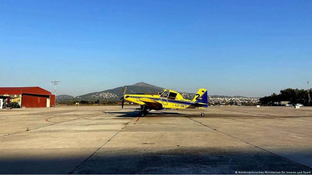 Δύο πυροσβεστιά αεροσκάφη τύπου Αir Tractor 802 από τη μοίρα πυρόσβεσης του κρατιδίου της Κάτω Σαξονίας για τις μεγάλες φωτιές που πλήττουν τη χώρα μας απέστειλε η Γερμανία μετά από το ελληνικό αίτημα για συνδρομή στο πλαίσιο του Ευρωπαϊκού Μηχανισμού Πολιτικής Προστασίας.