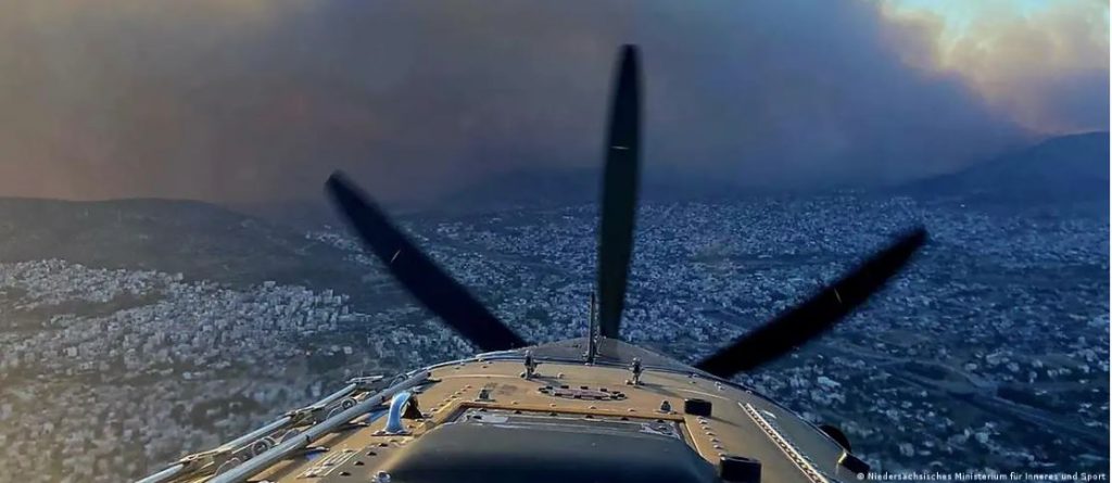 Μεταξύ άλλων το ελληνικό αίτημα αφορούσε ελαφρού τύπου πυροσβεστικά αεροσκάφη. Κατόπιν αυτού το κρατίδιο της Κάτω Σαξονίας, σε συντονισμό με το Κέντρο Αναφοράς και Κατάταστασης της Ομοσπονδίας και των Κρατιδίων (GMLZ) της Ομοσπονδιακής Υπηρεσίας Πολιτικής Προστασίας και Βοήθειας σε Καταστροφές (BBK) ενεργοποίησαν τη μοίρα πυρόσβεσης που βρίσκεται σταθμευμένη στο αεροδρόμιο Μπράουνσβαϊγκ-Βόλφσμπουργκ. Τα δύο πυροσβεστικά αεροσκάφη κατέφθασαν στο Τατόι με επταμελές πλήρωμα το απόγευμα της 22ας Αυγούστου και χθες αναμενόταν να τεθούν σήμερα σε επιχειρησιακή ετοιμότητα».