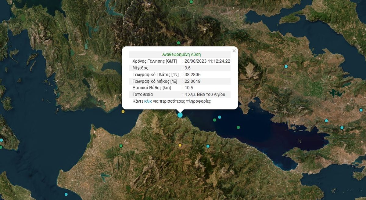 Σεισμός 3,6 Ρίχτερ σημειώθηκε νωρίτερα στο Αίγιο, σύμφωνα με το Γεωδυναμικό Ινστιτούτο.
