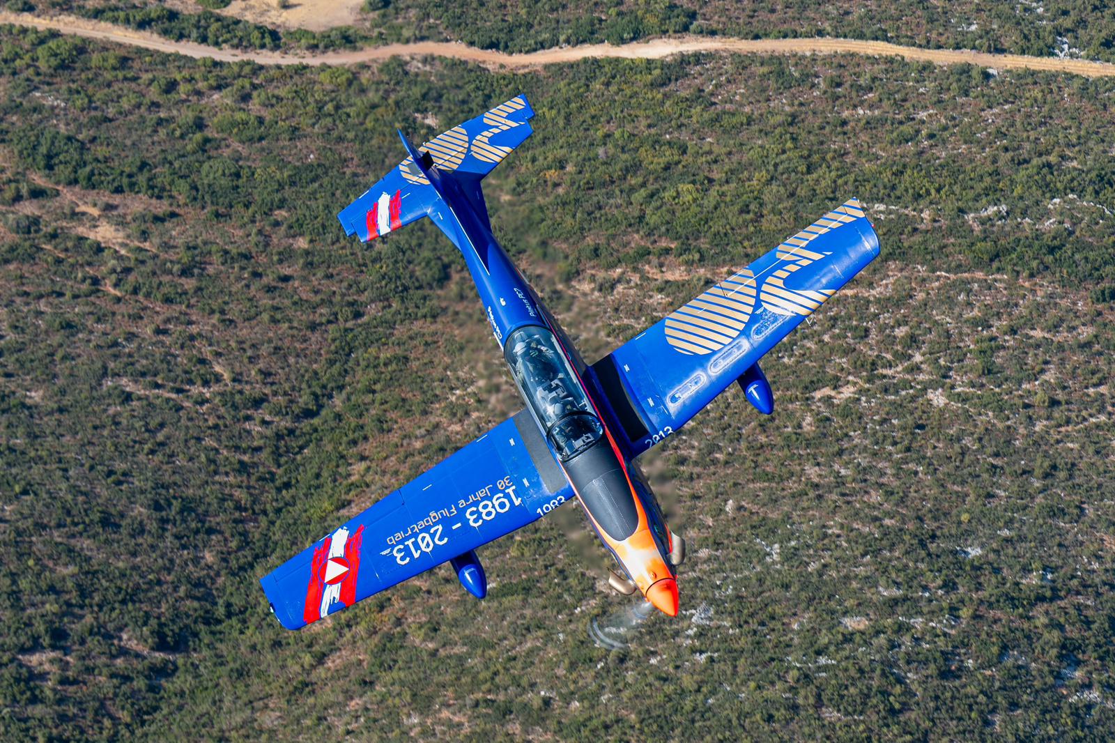 Θεαματικό το Display του ακροβατικού σμήνους Fursan Al Emarat, που βρέθηκαν στην Ελλάδα για πρώτη φορά με τους «Ιππότες» των Ηνωμένων Αραβικών Εμιράτων να δίνουν το δικό τους χρώμα στον ουρανό της Τανάγρας.