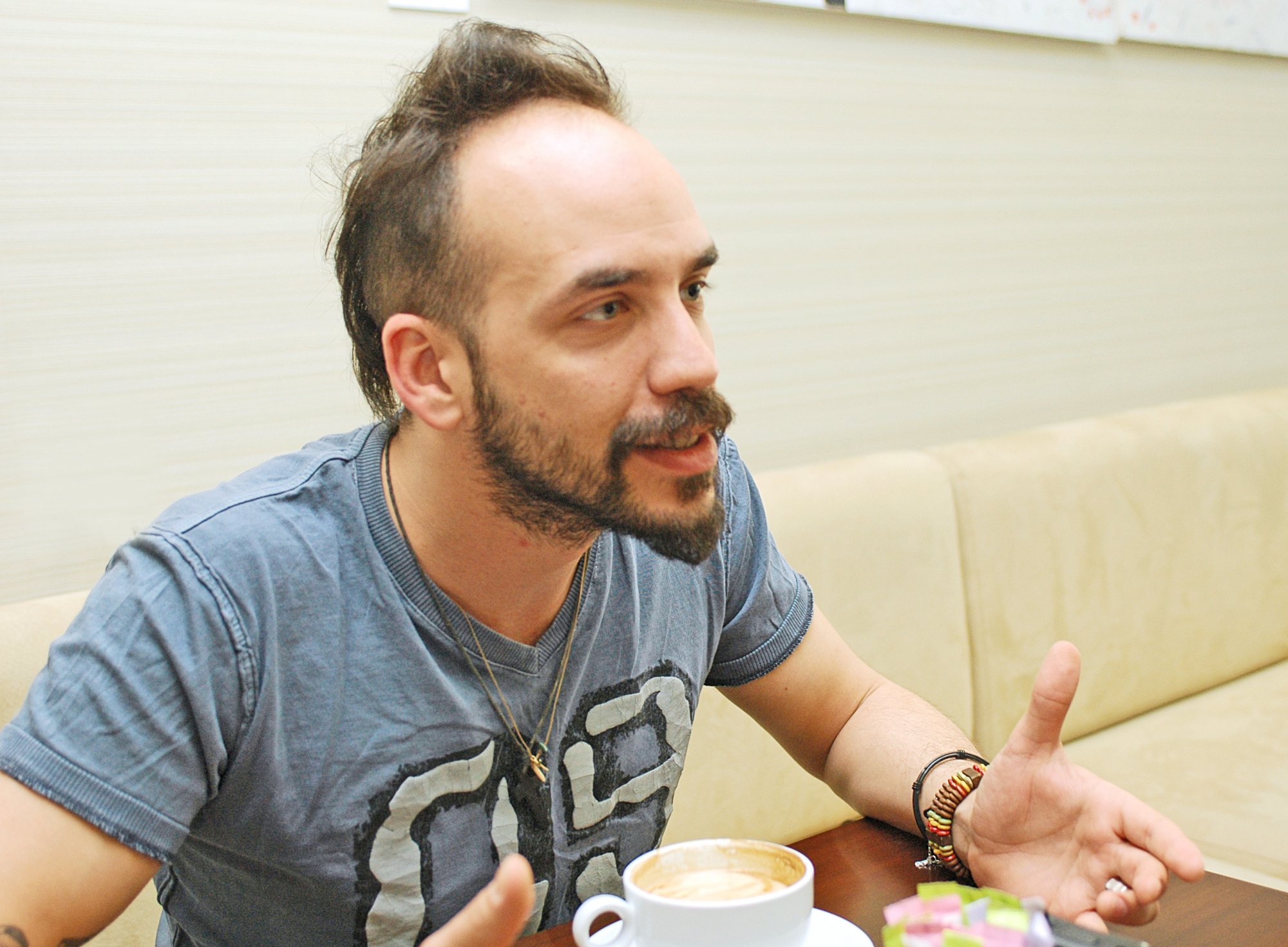 «Σας ευχαριστώ πολύ για τις ευχές. Ήμουν μέσα στον τοκετό είναι από τις εμπειρίες που σου αλλάζουν τη ζωή. Δεν θα ξαναδώ ποτέ γυναίκα που έχει γεννήσει, με τα ίδια μάτια, με απέραντο σεβασμό. Ξαφνικά τα βλέπεις όλα διαφορετικά. Ξυρίστηκα για το μωρό, βιντεοσκοπήσαμε όλη τη γέννα. Η σύζυγός μου είναι πολύ καλά. Είμαι χαρούμενος. Αγχώθηκα στον πρώτο σπασμό. Έχουμε σκεφτεί όνομα για το παιδί μας», ανέφερε ο τραγουδιστής, ενώ κέρασε τους δημοσιογράφους γλυκά.