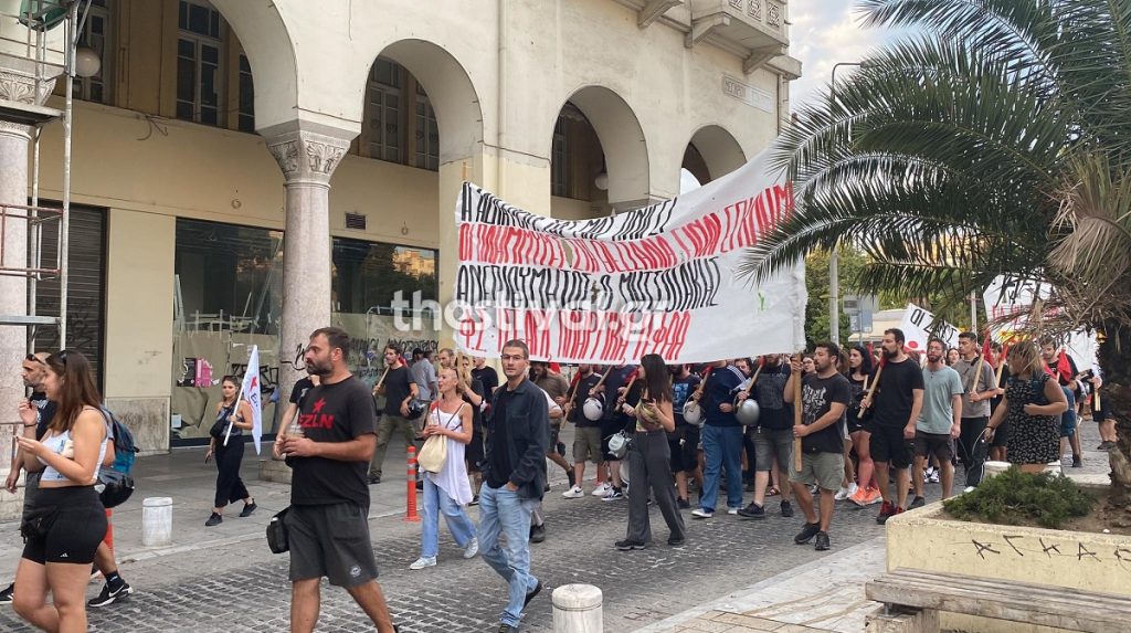 Πορεία στο κέντρο της Θεσσαλονίκης ξεκίνησαν το απόγευμα του Σαββάτου (16/9) αντιεξουσιαστές, αριστερές οργανώσεις και φοιτητές με αφορμή την επίσκεψη του πρωθυπουργού Κυριάκου Μητσοτάκη στην πόλη.