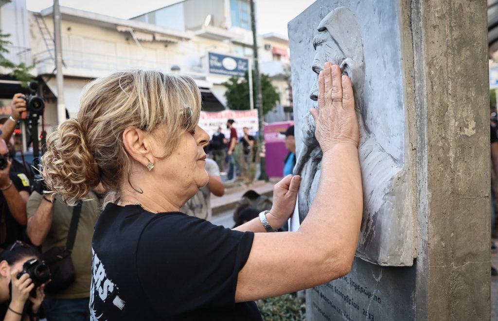 Η μητέρα του ασπάστηκε τη μορφή του γιού της στο μαρμάρινο μνημείο, ενώ ο πατέρας του απαθανατίστηκε αγκαλιά με τον Γιάννη Μάγγο, που επίσης έχασε με τραγικό τρόπο το γιο του, Βασίλη, το 2020.
