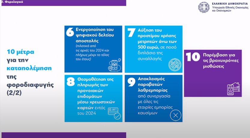 Από την πλευρά του, ο κ. Θεοχάρης αναφέρθηκε σε 10 μέτρα για την αντιμετώπιση της φοροδιαφυγής.