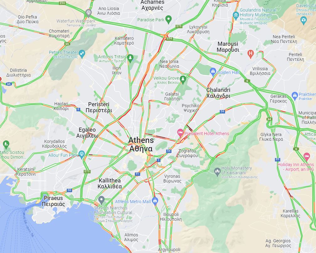 Αυτή την ώρα παρατηρείται κυκλοφοριακή αποφόρτιση σε σχέση με τις πρωινές ώρες με τα σημεία όπου εντοπίζεται αυξημένη κίνηση να είναι τα εξής: