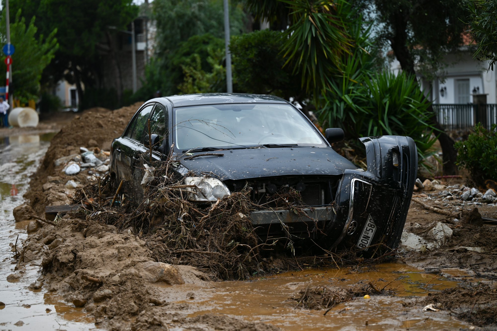 Αντίστοιχες εικόνες και στα δυτικά προάστια του Βόλου, με καταστροφές στις Αλυκές, τα Πευκάκια, την Κριθαριά, τον Άγιο Γεώργιο Κυνηγών και το Μάραθο.