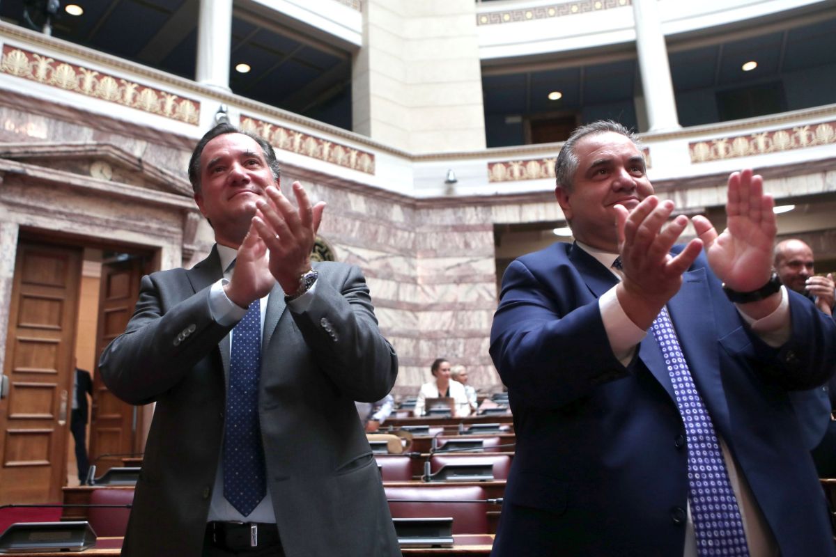 Το πρώτο περιστατικό αφορά τον υπουργό και υφυπουργό Εργασίας Άδωνη Γεωργιάδη και Β. Σπανάκη οι οποίοι επέλεξαν να καθίσουν στα έδρανα του ΚΚΕ, στη συνεδρίαση της Κοινοβουλευτικής Ομάδας της ΝΔ, η οποία δεν έγινε όπως άλλες φορές στην αίθουσα Γερουσίας, αλλά στην αίθουσα της Ολομέλειας.