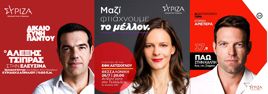 Σε αυτό το σημείο, ενδιαφέρον παρουσιάζουν οι ομοιότητες των ψηφιακών αφισών και των δύο υποψηφίων με παλαιότερη του κ. Αλέξη Τσίπρα. Πανομοιότυπο καδράρισμα, βλέμμα ευθυτενές, αμυδρό χαμόγελο, λευκό πουκάμισο.