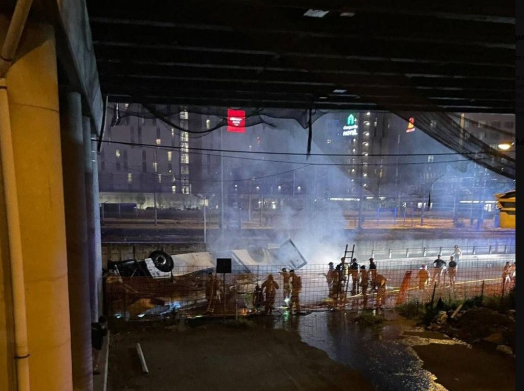 Βίντεο που είδε το φως της δημοσιότητας δείχνει τις τελευταίες στιγμές της πορείας του λεωφορείου, που δεν φαίνεται να έχει αναπτύξει μεγάλη ταχύτητα. Μετά την πτώση το λεωφορείο τυλίχτηκε στις φλόγες.