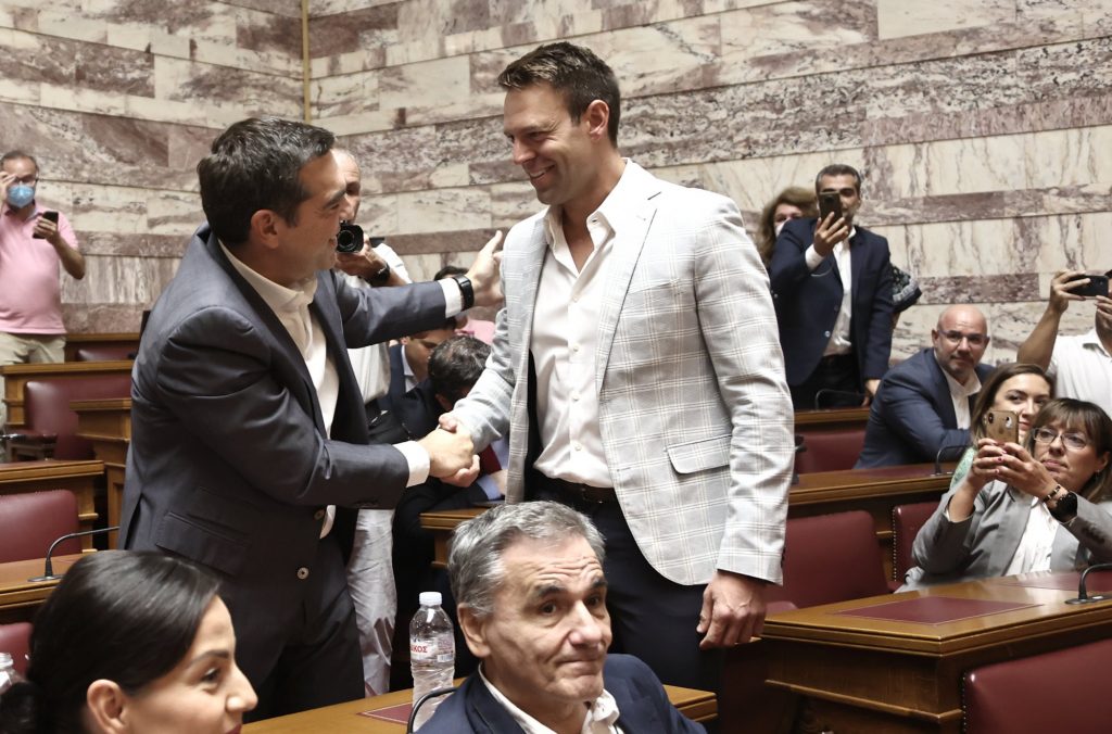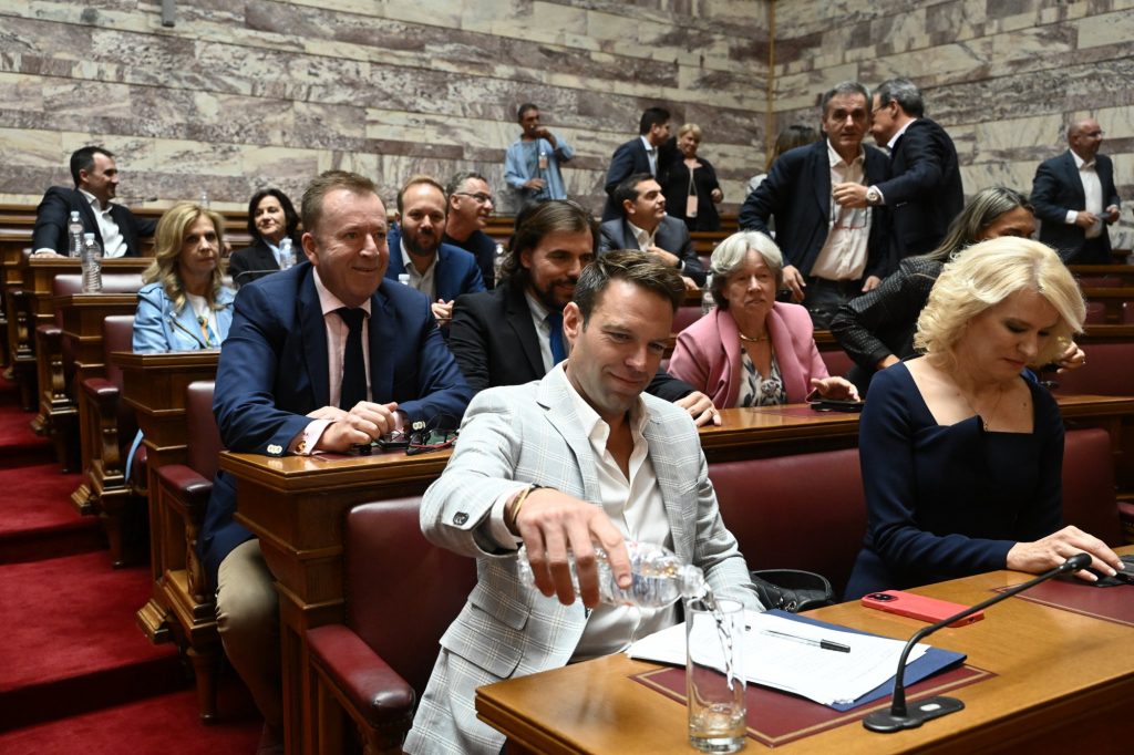 Πολλοί βουλετές, με πρώτη την αντιπρόεδρο της Βουλής, Όλγα Γεροβασίλη, έσπευσαν να τον αγκαλιάσουν και να τον φιλήσουν.